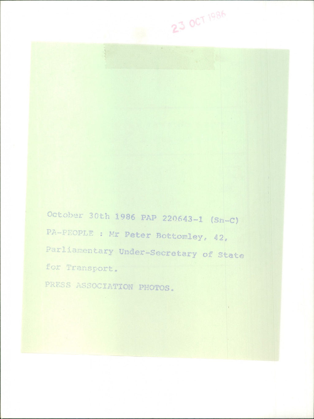 Mr. Peter Bottomley, 42, Parliamentary Under-Secretary of State for Transport. Mr. Peter Bottomley, 42, Parliamentary Under-Secretary of State for Transport.