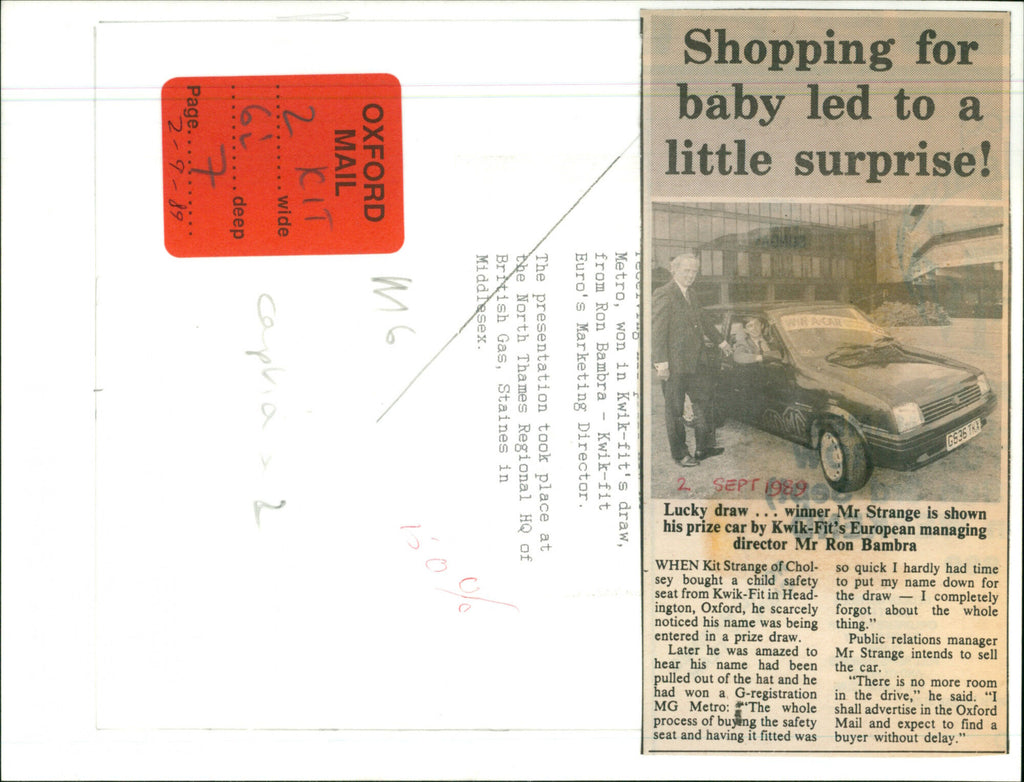 Lucky draw... winner Mr. Strange is shown his prize car by Kwik-Fit's European managing director Mr. Ron Bambra. Lucky draw... winner Mr. Strange is shown his prize car by Kwik-Fit's European managing director Mr. Ron Bambra.