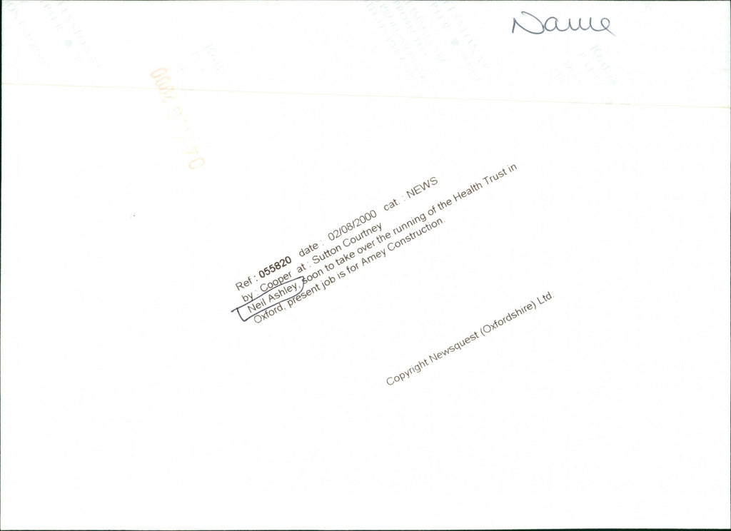 Neil Ashley, soon to take over the running of the Health Trust in Oxford, present job is for Amey Construction Neil Ashley, soon to take over the running of the Health Trust in Oxford, present job is for Amey Construction
