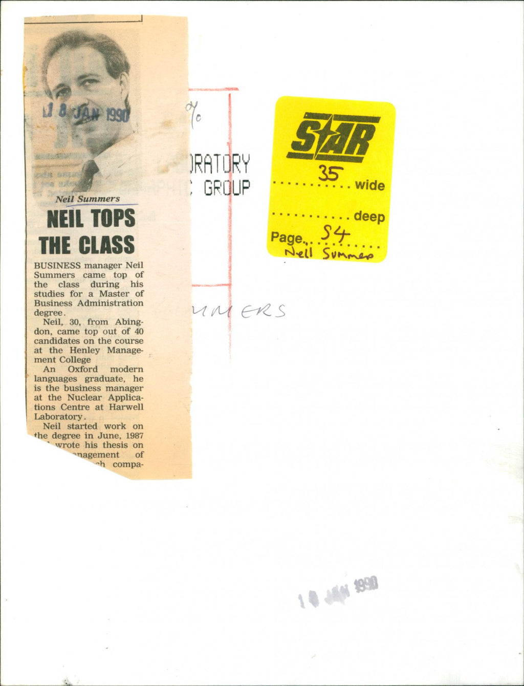 Business manager Neil Summers came top of the class during his studies for a Master of Business Administration degree. Neil 30, from Abingdon, came top out of 40 candidates on the course at the Henley Management College. Business manager Neil Summers came top of the class during his studies for a Master of Business Administration degree. Neil 30, from Abingdon, came top out of 40 candidates on the course at the Henley Management College.