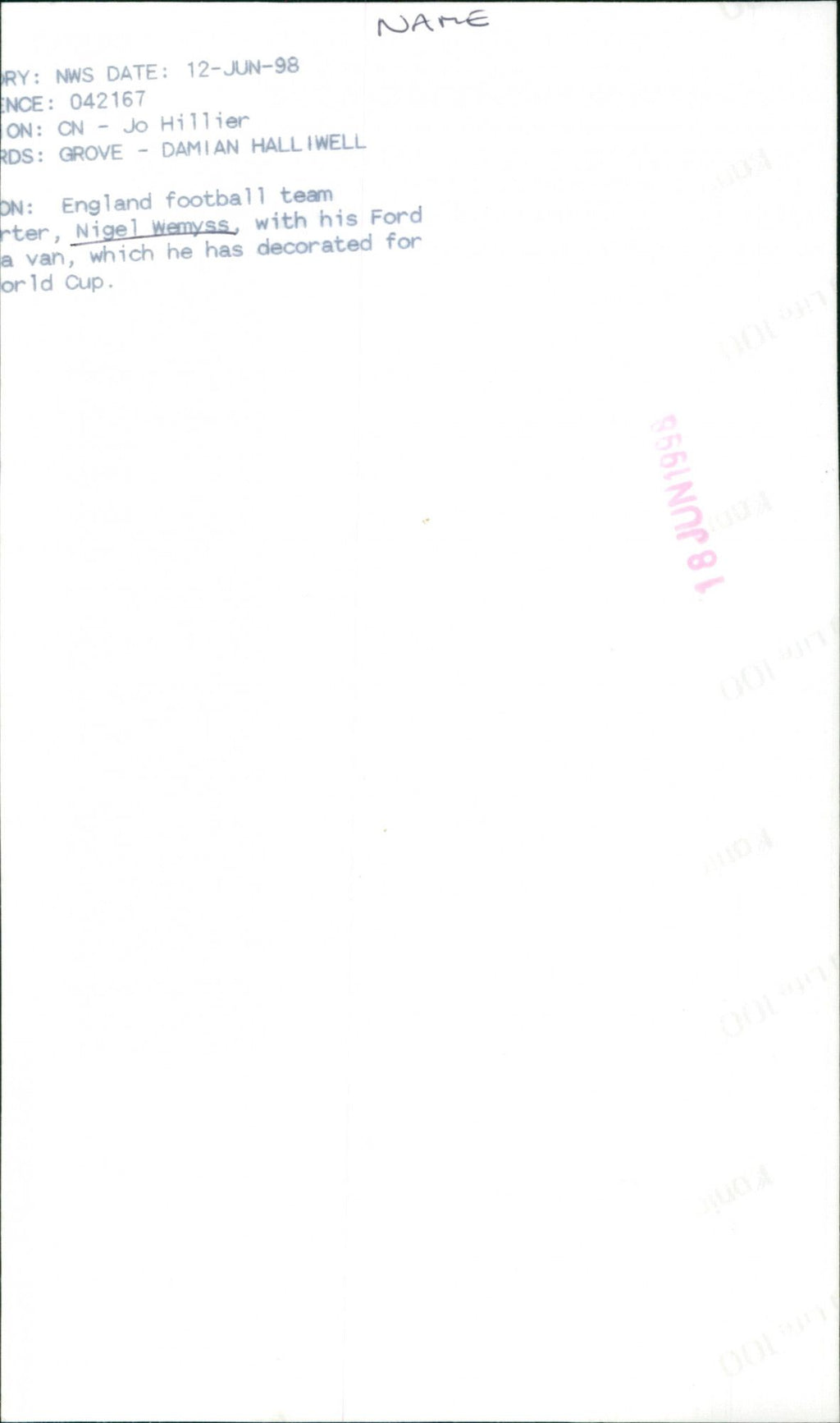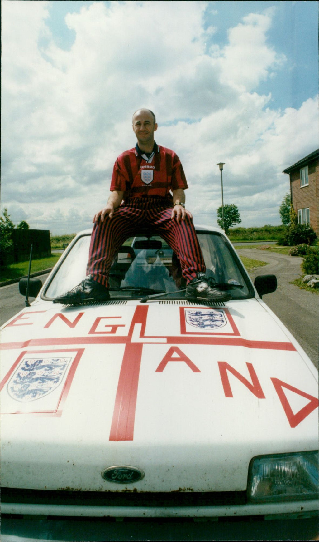 England football team supporter, Nigel Wemyss, with his Ford van, which he has decorated for World Cup. England football team supporter, Nigel Wemyss, with his Ford van, which he has decorated for World Cup.