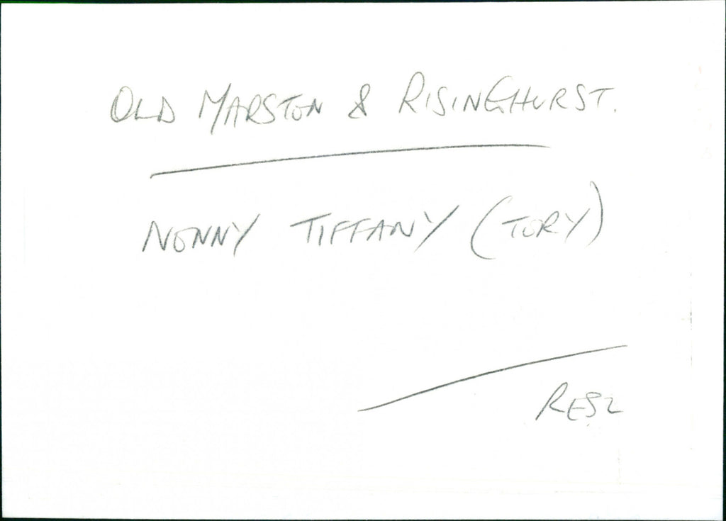 Press photo of Nonny Tiffany (Tory). Press photo of Nonny Tiffany (Tory).