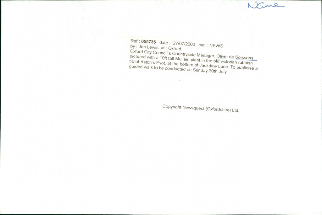 Oxford City Council's Countryside Manager, Oliver de Soissons, pictured with a 10ft tall Mullein plant in the old victorian rubbish tip of Aston's Eyot, at the bottom of Jackdaw Lane. To publicise a guided walk to be conducted on Sunday 30th July. Oxford City Council's Countryside Manager, Oliver de Soissons, pictured with a 10ft tall Mullein plant in the old victorian rubbish tip of Aston's Eyot, at the bottom of Jackdaw Lane. To publicise a guided walk to be conducted on Sunday 30th July.