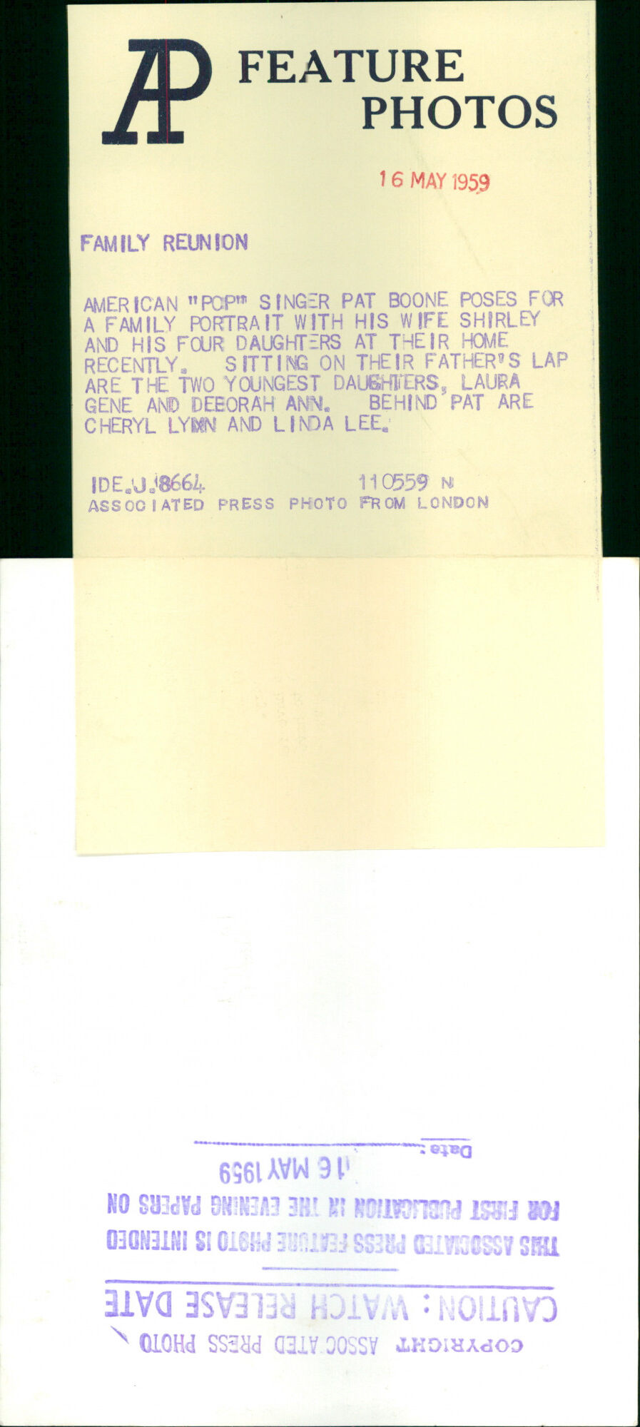 All our press photos are LIMITED ARCHIVE ORIGINALS - they are the actual prints that were used by the newspapers, they are not reprints or digital prints produced by us. All the prints are at least 30 years old and up to 100 years old.