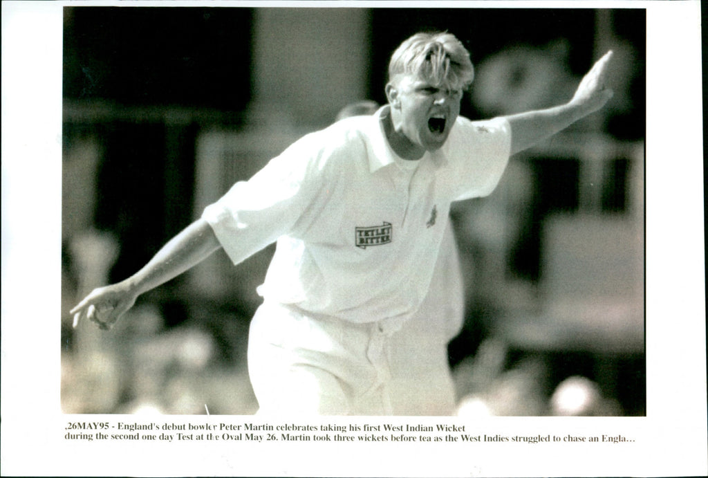 Englands debut bowler celebrates taking his first West Indian Wicket Englands debut bowler celebrates taking his first West Indian Wicket