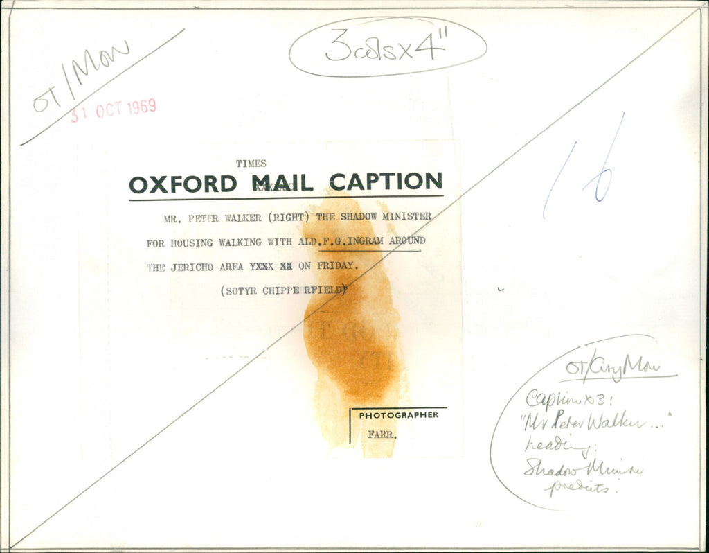 Peter Walker, Shadow Minister for Housing, with Ald F.G. Ingram Peter Walker, Shadow Minister for Housing, with Ald F.G. Ingram