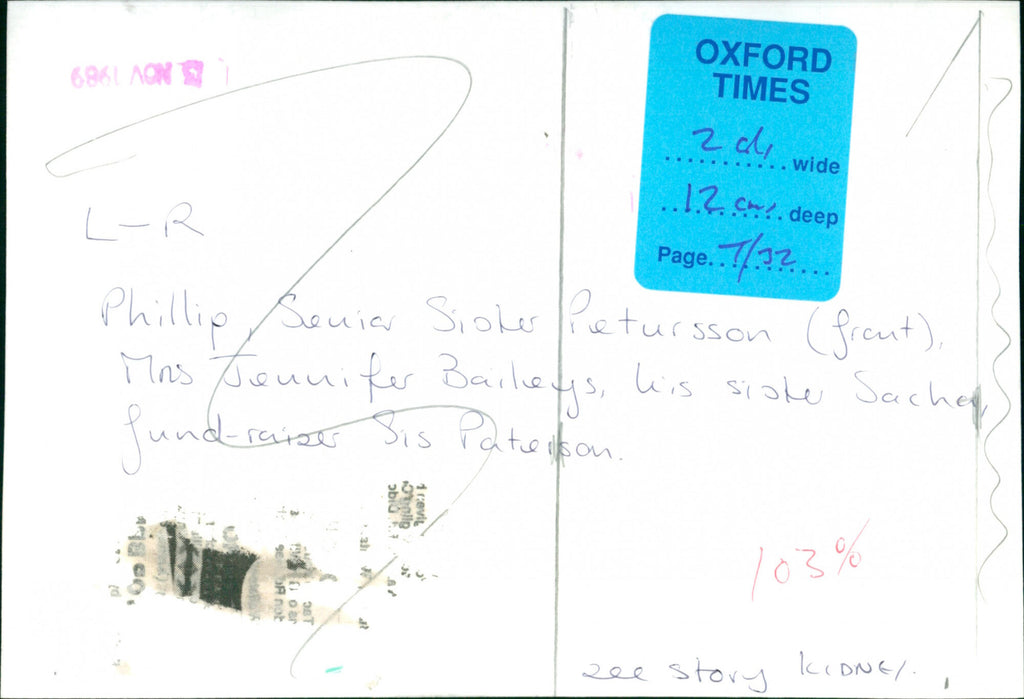 Kidney transplant patient Phillip Bailey with Senior Sister Petursson, Mrs. Jennifer Baileys, his sister Sacha, fund-raiser Sis Paterson. Kidney transplant patient Phillip Bailey with Senior Sister Petursson, Mrs. Jennifer Baileys, his sister Sacha, fund-raiser Sis Paterson.