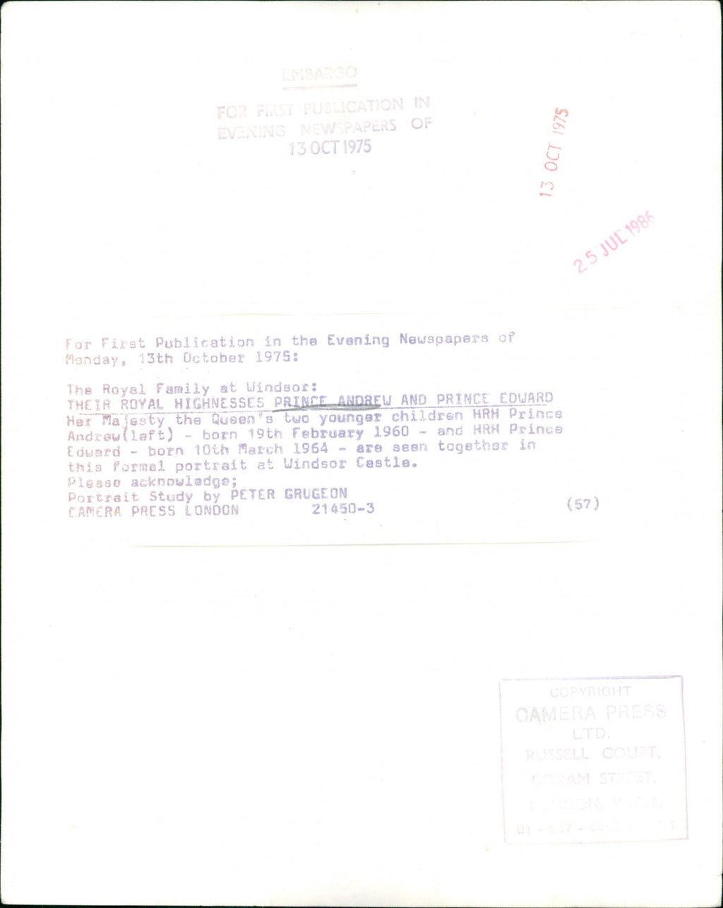 Prince Andrew and Prince Edward at Windsor Castle. Prince Andrew and Prince Edward at Windsor Castle.