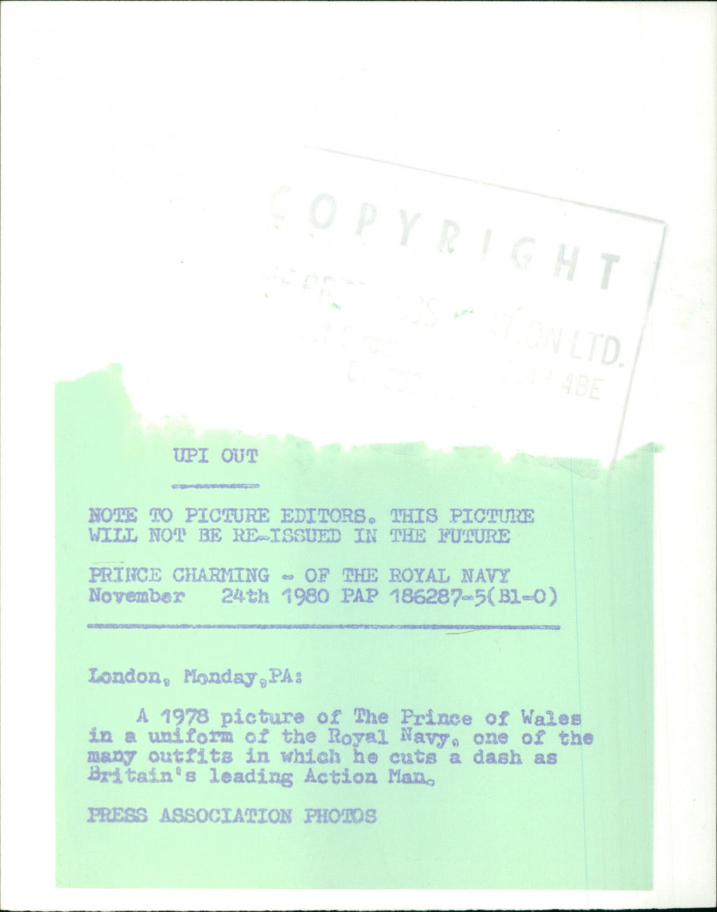 All our press photos are LIMITED ARCHIVE ORIGINALS - they are the actual prints that were used by the newspapers, they are not reprints or digital prints produced by us. All the prints are at least 30 years old and up to 100 years old.
