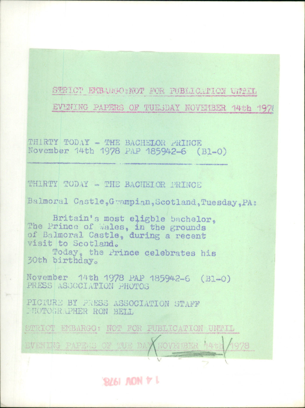 All our press photos are LIMITED ARCHIVE ORIGINALS - they are the actual prints that were used by the newspapers, they are not reprints or digital prints produced by us. All the prints are at least 30 years old and up to 100 years old.