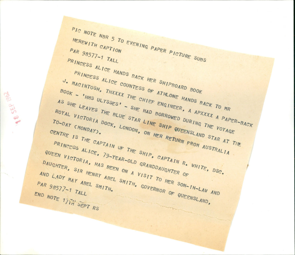 Princess Alice hands back her shipboard book to Mr. J. Macintosh - Vintage Photograph