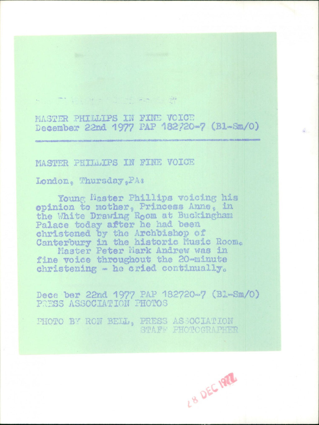 All our press photos are LIMITED ARCHIVE ORIGINALS - they are the actual prints that were used by the newspapers, they are not reprints or digital prints produced by us. All the prints are at least 30 years old and up to 100 years old.