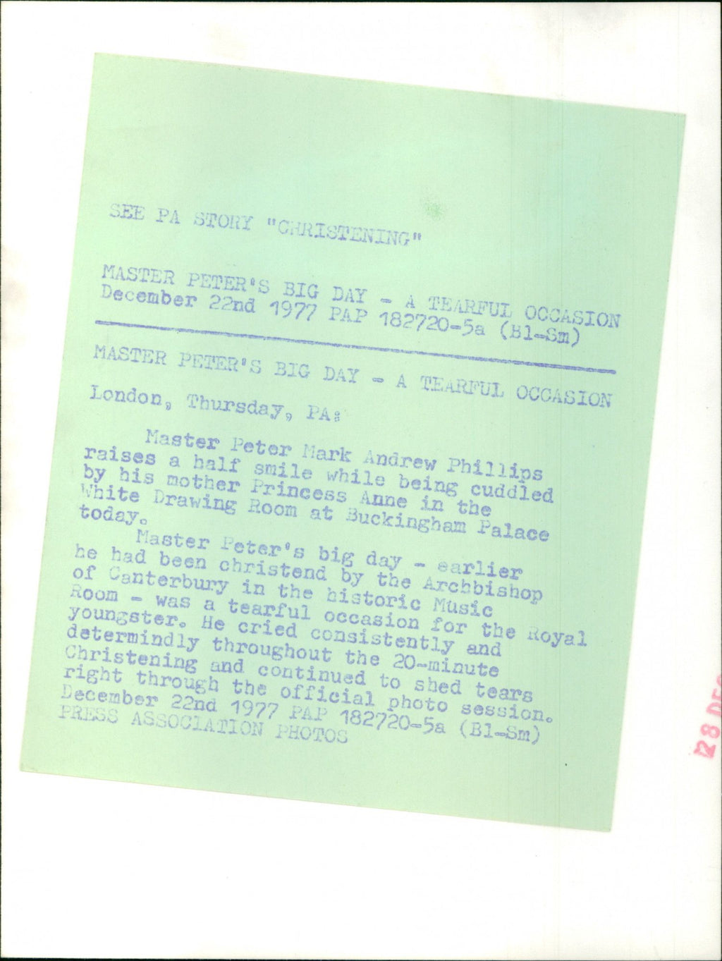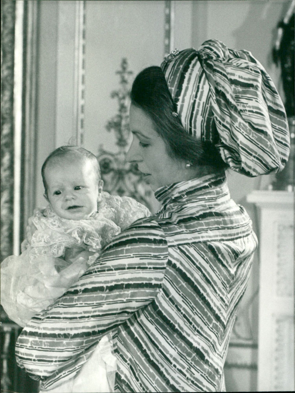 Master Peter Mark Andrew Phillips raises a half smile while being cuddled by his mother Princes Anne in the White Drawing Room at Buckingham Palace. Master Peter Mark Andrew Phillips raises a half smile while being cuddled by his mother Princes Anne in the White Drawing Room at Buckingham Palace.