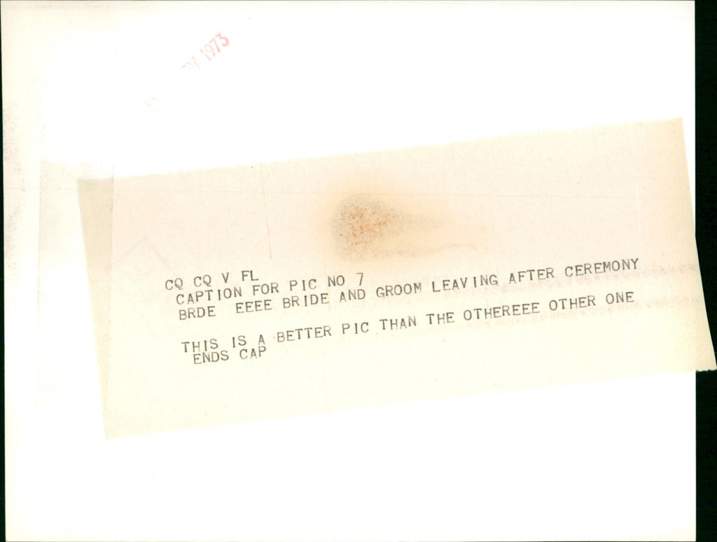 Bride and groom leaving after ceremony. Bride and groom leaving after ceremony.