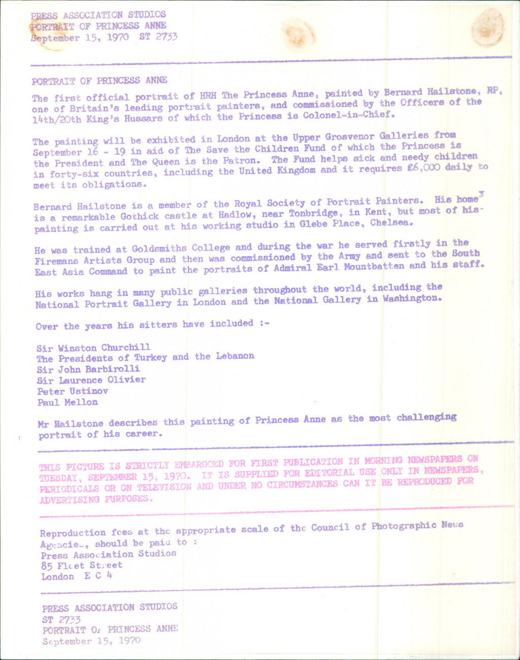 Portrait of Princess Anne. The first official portrait of HRH The Princess Anne, painted by Bernard Hailstone, one of Britain's leading portrait painters, and commissioned by the Officers of the 14th/20th King's Hussars of which the Princess is Colonel-in-Chief. Portrait of Princess Anne. The first official portrait of HRH The Princess Anne, painted by Bernard Hailstone, one of Britain's leading portrait painters, and commissioned by the Officers of the 14th/20th King's Hussars of which the Princess is Colonel-in-Chief.