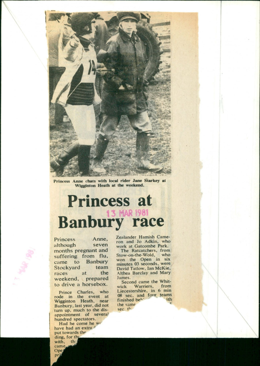 Princess at Banbury race. Princess Anne with local rider Jane Starkey at Wigginton Heath at the weekend. Princess at Banbury race. Princess Anne with local rider Jane Starkey at Wigginton Heath at the weekend.