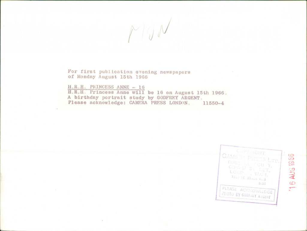 H.R.H. Princess Anne - 16. H.R.H. Princess Anne will be 16 on August 15th 1966. H.R.H. Princess Anne - 16. H.R.H. Princess Anne will be 16 on August 15th 1966.