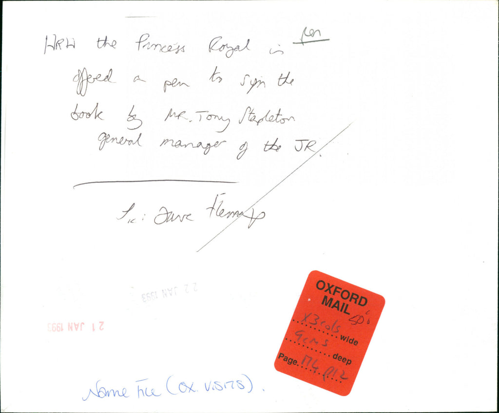 Princess Anne was offered a pen to sign the book by Mr. Tony Stapleton General Manager of the JR. Princess Anne was offered a pen to sign the book by Mr. Tony Stapleton General Manager of the JR.