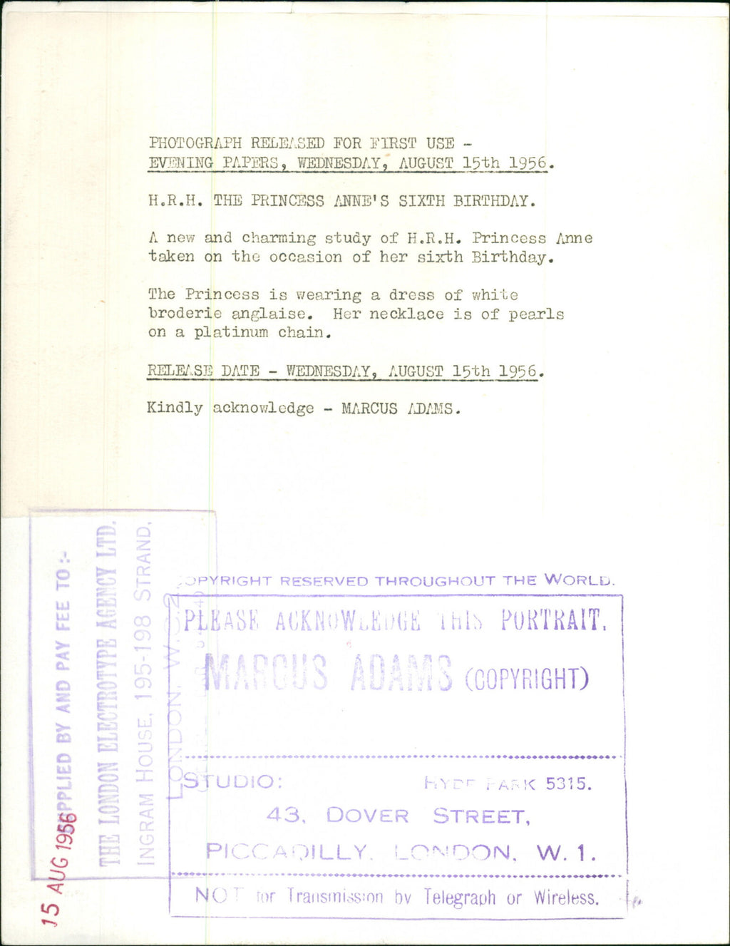 Princess Anne's portrait was taken on her 6th birthday. Princess Anne's portrait was taken on her 6th birthday.