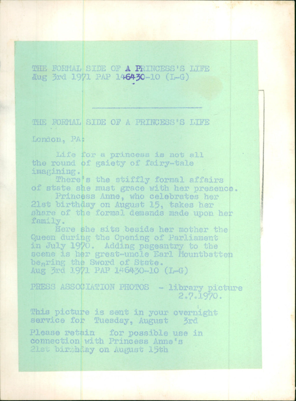 All our press photos are LIMITED ARCHIVE ORIGINALS - they are the actual prints that were used by the newspapers, they are not reprints or digital prints produced by us. All the prints are at least 30 years old and up to 100 years old.