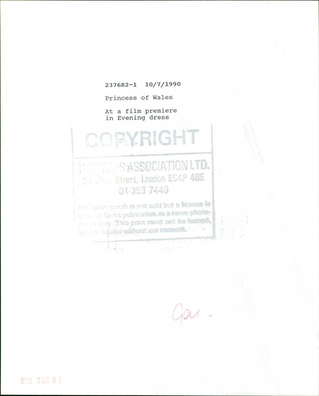 Princess of Wales at a film premiere in Evening dress. Princess of Wales at a film premiere in Evening dress.