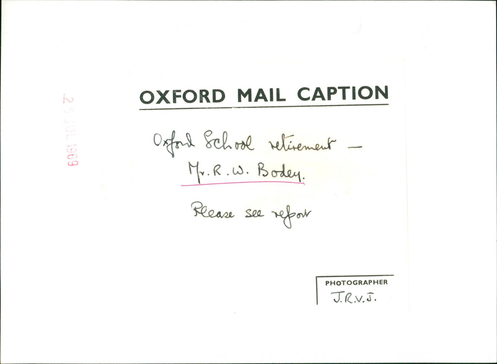 Mr. R.W. Bodey, Oxford School retirement Mr. R.W. Bodey, Oxford School retirement