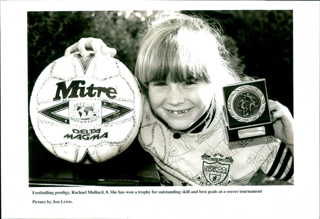 8 year-old footballing prodigy, Rachel Mullard. She has won a trophy for outstanding skill and best goals at a soccer tournament. 8 year-old footballing prodigy, Rachel Mullard. She has won a trophy for outstanding skill and best goals at a soccer tournament.
