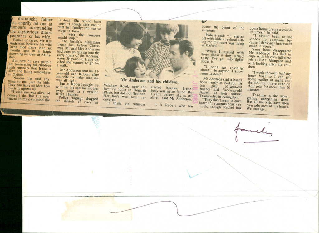 Father of three Mr Ray Anderson believes his wife passed away more than six months in a tragic drowning incident at Abingdon. Father of three Mr Ray Anderson believes his wife passed away more than six months in a tragic drowning incident at Abingdon.