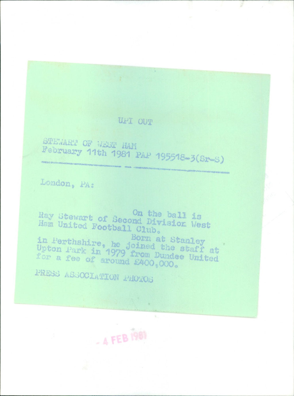 Ray Stewart of west ham united football club Ray Stewart of west ham united football club