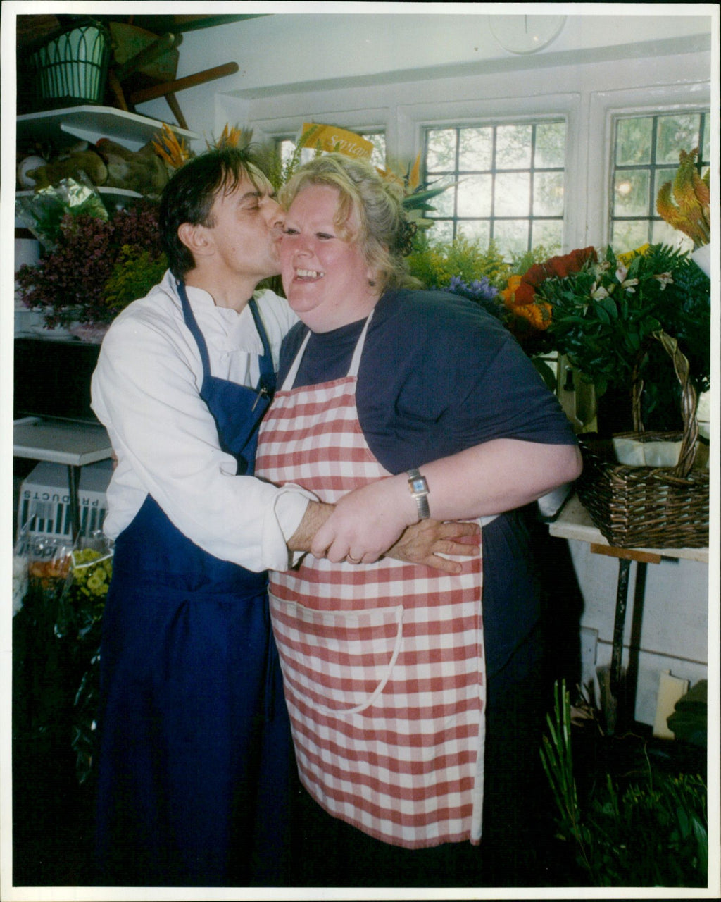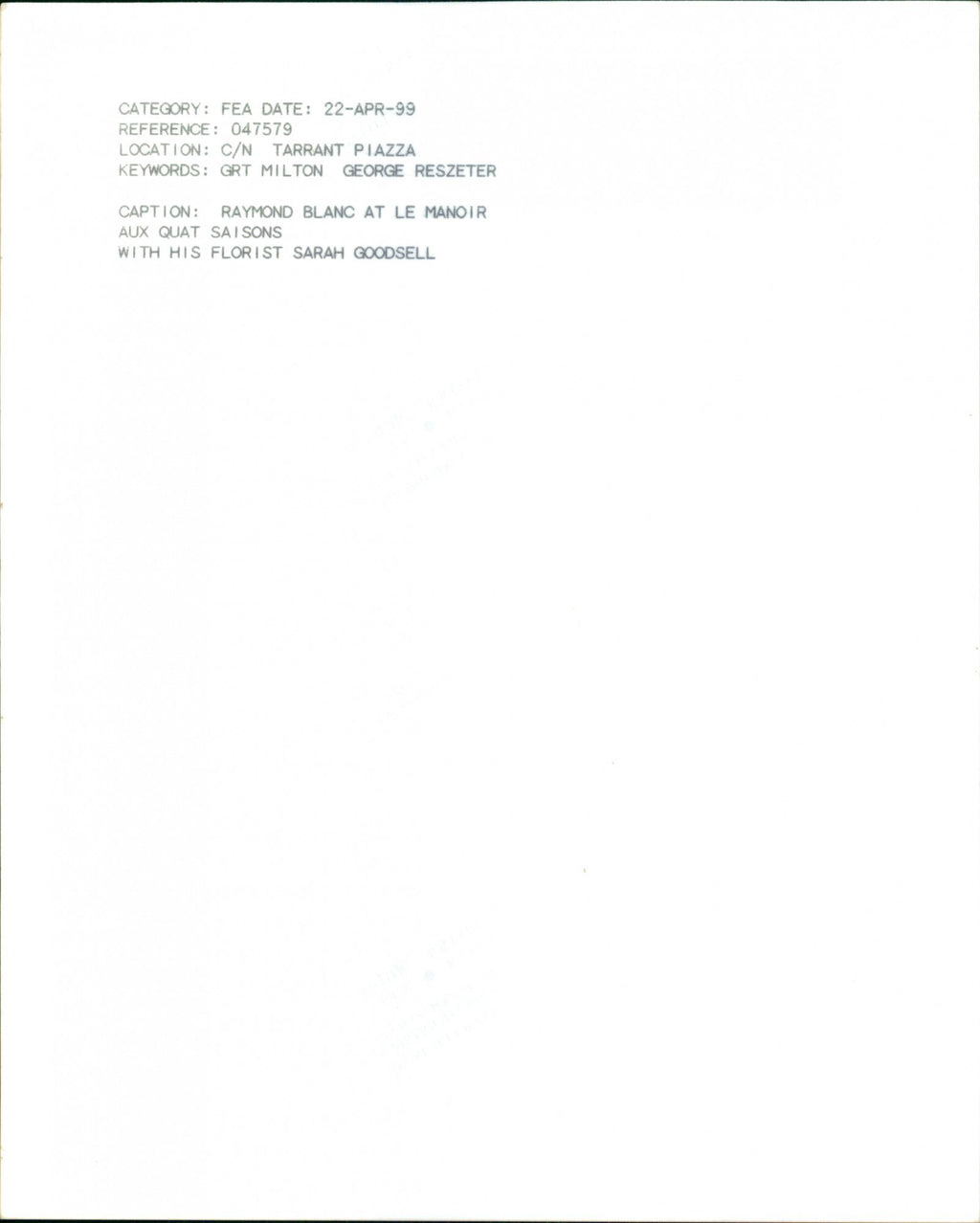 1999 - RAYMOND BLANC. AT LE MANOIR. WITH HIS FLORIST SARAH GOODSELL. 1999 - RAYMOND BLANC. AT LE MANOIR. WITH HIS FLORIST SARAH GOODSELL.