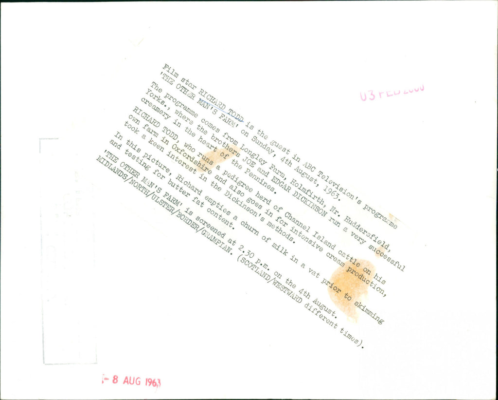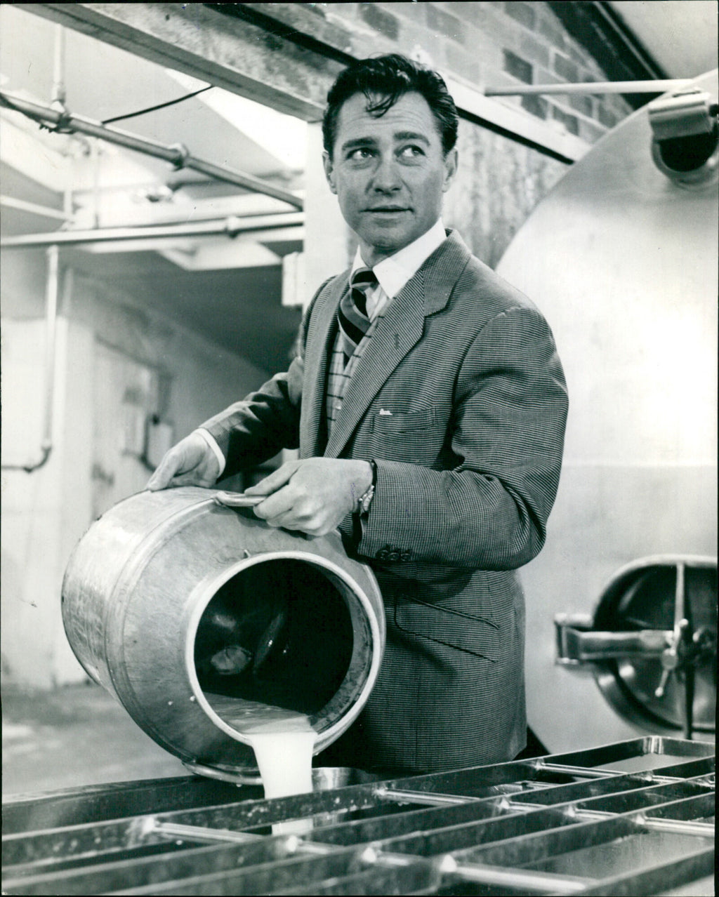 In this picture, Richard empties a churn of milk in a vat prior to skimming and testing for butter fat content. In this picture, Richard empties a churn of milk in a vat prior to skimming and testing for butter fat content.