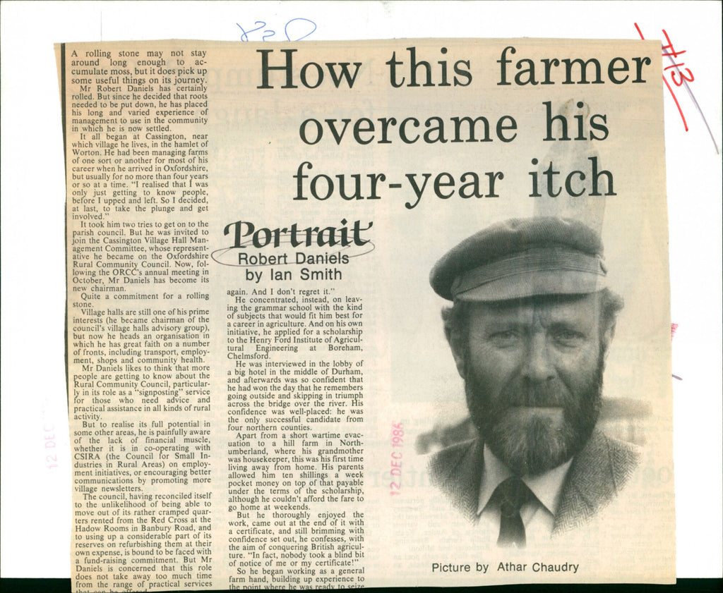 Portrait of farmer Robert Daniels. Portrait of farmer Robert Daniels.