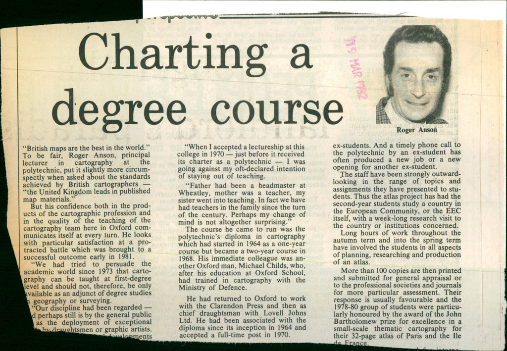 Charting a degree course. Roger Anson principal lecturer in cartography at the polytechnic, put it slightly more circumspectly when asked about the standards achieved by British cartographers - "the United Kingdom leads in published map materials." Charting a degree course. Roger Anson principal lecturer in cartography at the polytechnic, put it slightly more circumspectly when asked about the standards achieved by British cartographers - "the United Kingdom leads in published map materials."