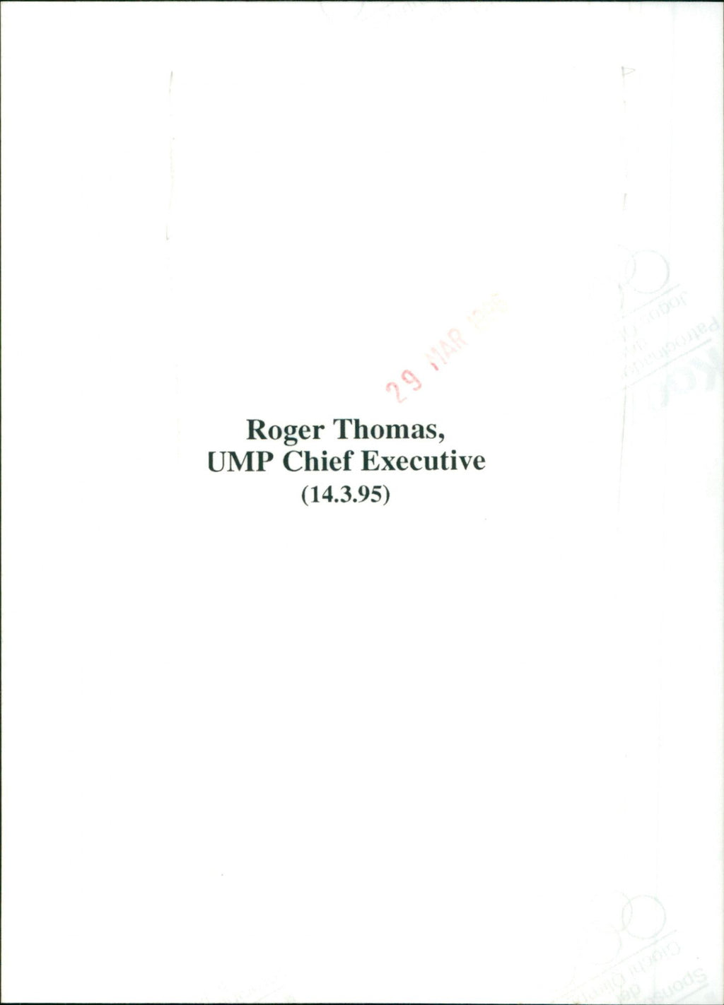 UMP Chief Executive (14.3.95) UMP Chief Executive (14.3.95)