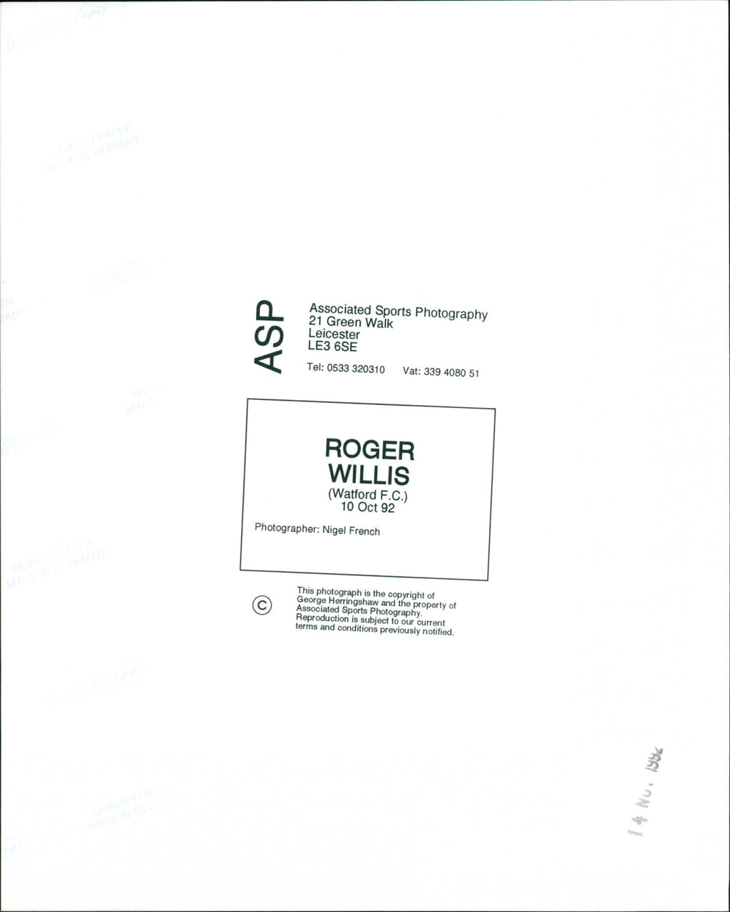 All the original vintage images are sold without watermarks. The prints are all over 30 years old and have been in the storage of the newspapers for decades. We sell them in the same conditions they were given to us by the archives.