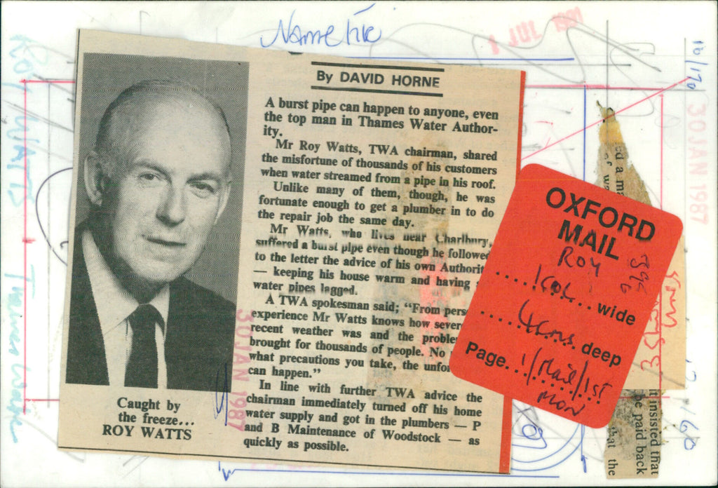 Portrait of TWA (Thames Water Authority) chairman, Roy Watts. Portrait of TWA (Thames Water Authority) chairman, Roy Watts.