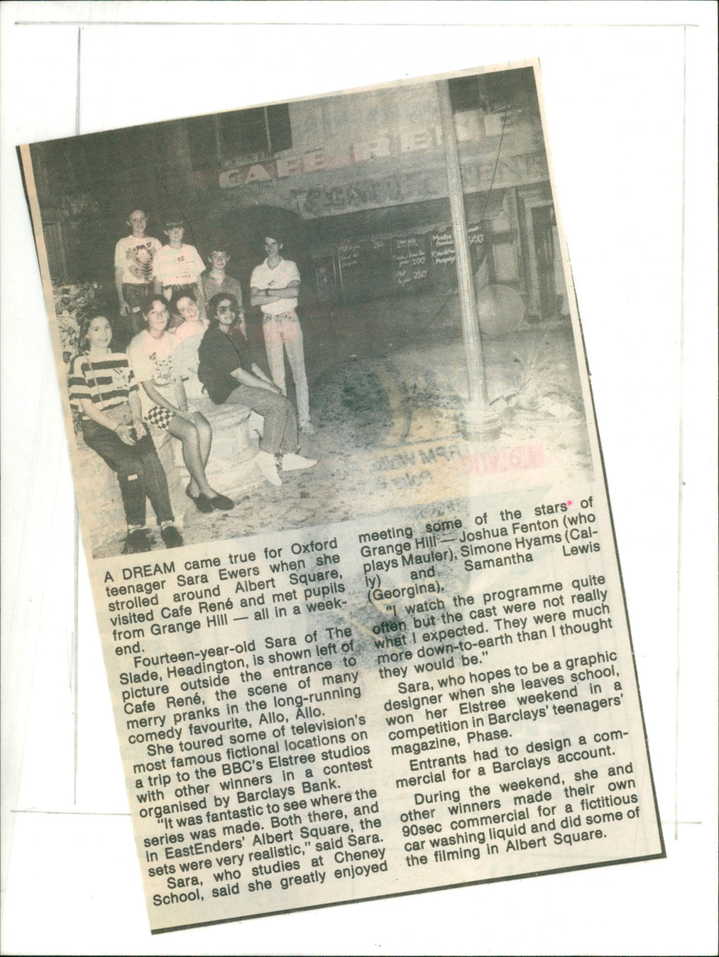 A dream came true for Oxford teenager Sara Ewers when she strolled around Albert Square, visited cafe Rene and met pupils from Grange Hill A dream came true for Oxford teenager Sara Ewers when she strolled around Albert Square, visited cafe Rene and met pupils from Grange Hill