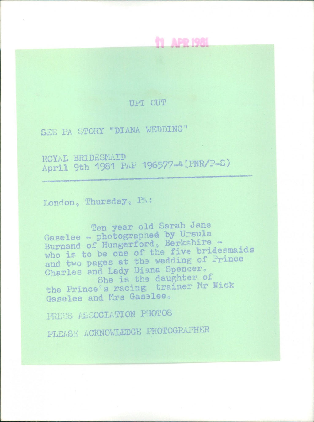 All our press photos are LIMITED ARCHIVE ORIGINALS - they are the actual prints that were used by the newspapers, they are not reprints or digital prints produced by us. All the prints are at least 30 years old and up to 100 years old.