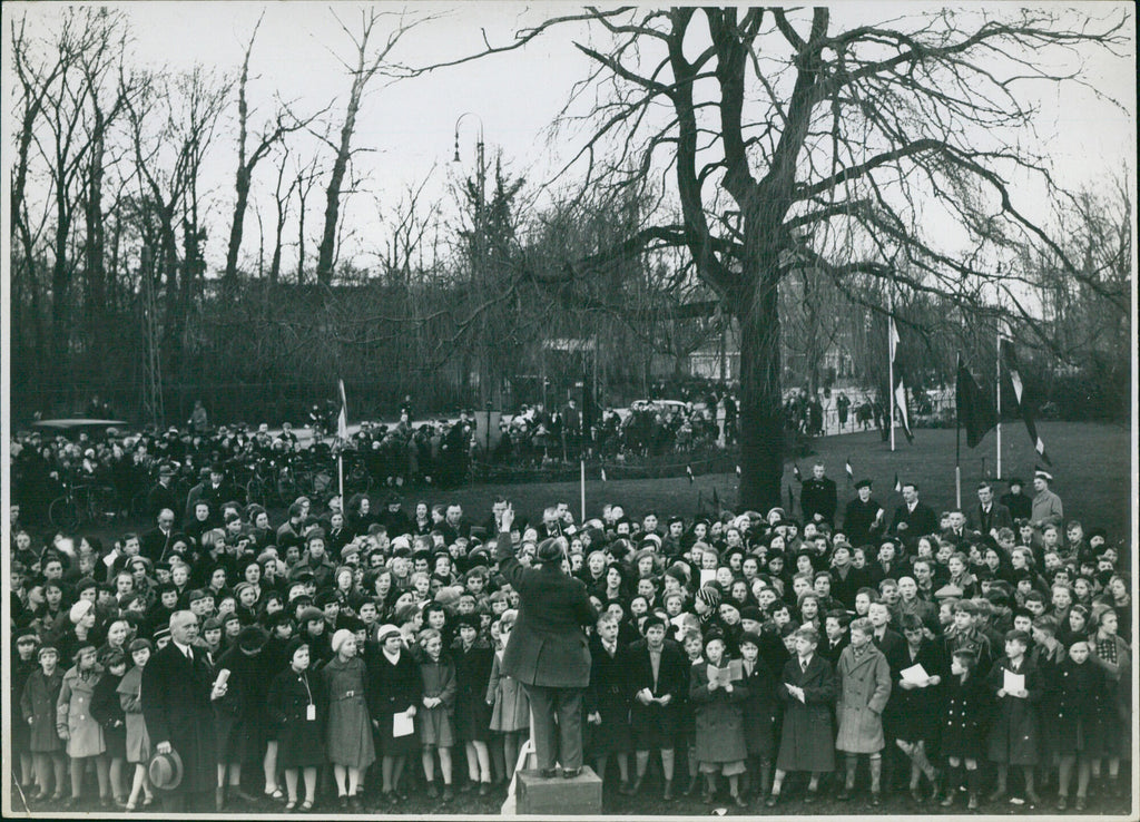 The school choir performing outside at the park The school choir performing outside at the park