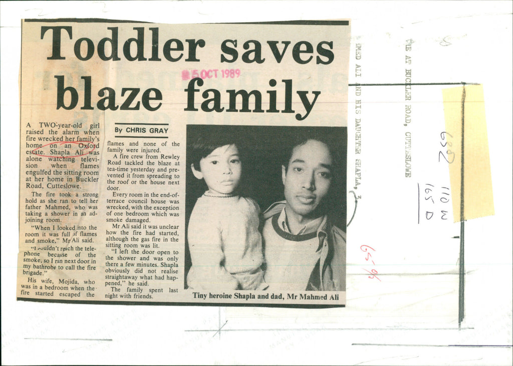 Tiny heroine Shapla and dad, Mr. Mahmed Ali. The two-year-old girl raised the alarm when fire wrecked her family's home on an Oxford estate. Shapla Ali was alone when flames engulfed the sitting room at her home in Buckler Road, Cutteslowe. Tiny heroine Shapla and dad, Mr. Mahmed Ali. The two-year-old girl raised the alarm when fire wrecked her family's home on an Oxford estate. Shapla Ali was alone when flames engulfed the sitting room at her home in Buckler Road, Cutteslowe.