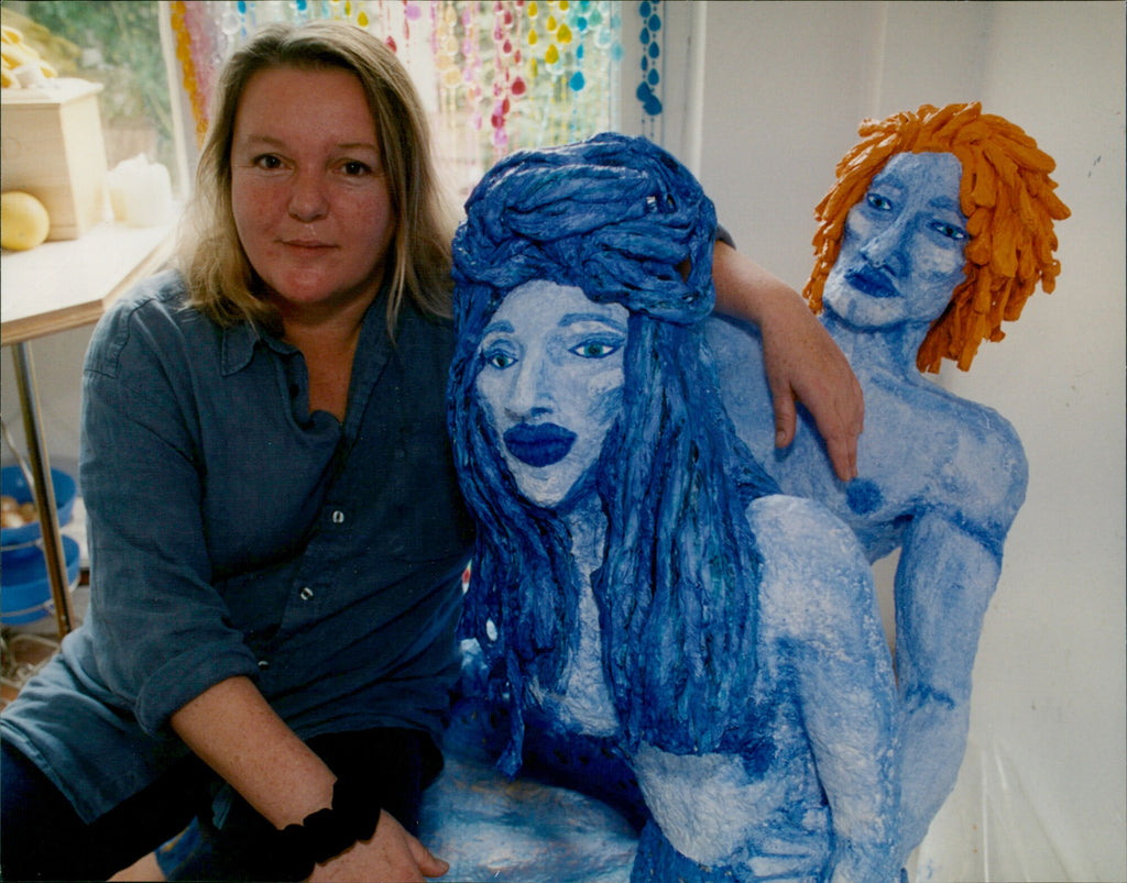 Artist, Shirley Swadling and her papier mache art work. Artist, Shirley Swadling and her papier mache art work.