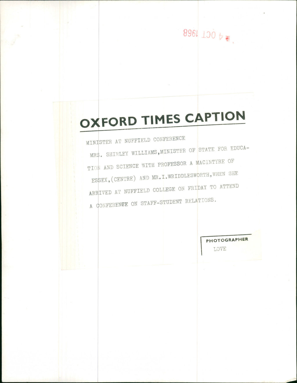 All our press photos are LIMITED ARCHIVE ORIGINALS - they are the actual prints that were used by the newspapers, they are not reprints or digital prints produced by us. All the prints are at least 30 years old and up to 100 years old.