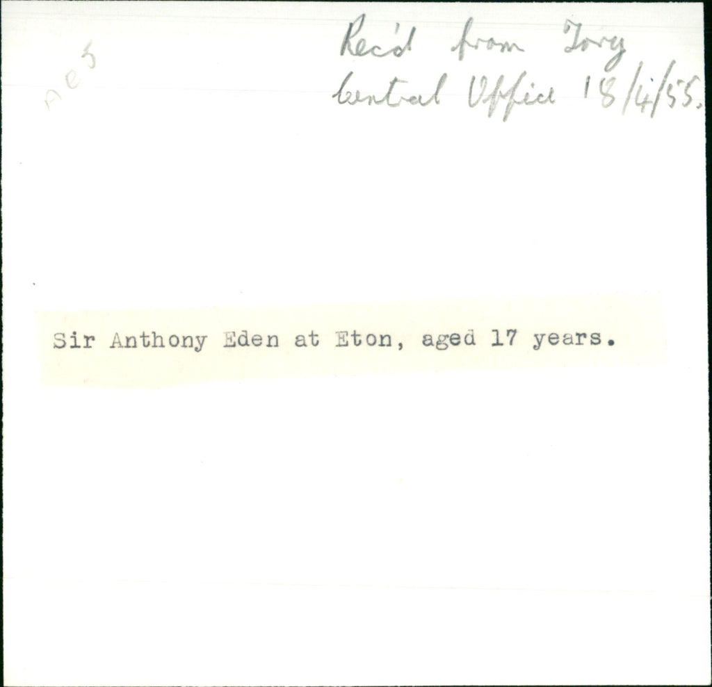 Sir Anthony Eden at Eton, aged 17 years. Sir Anthony Eden at Eton, aged 17 years.