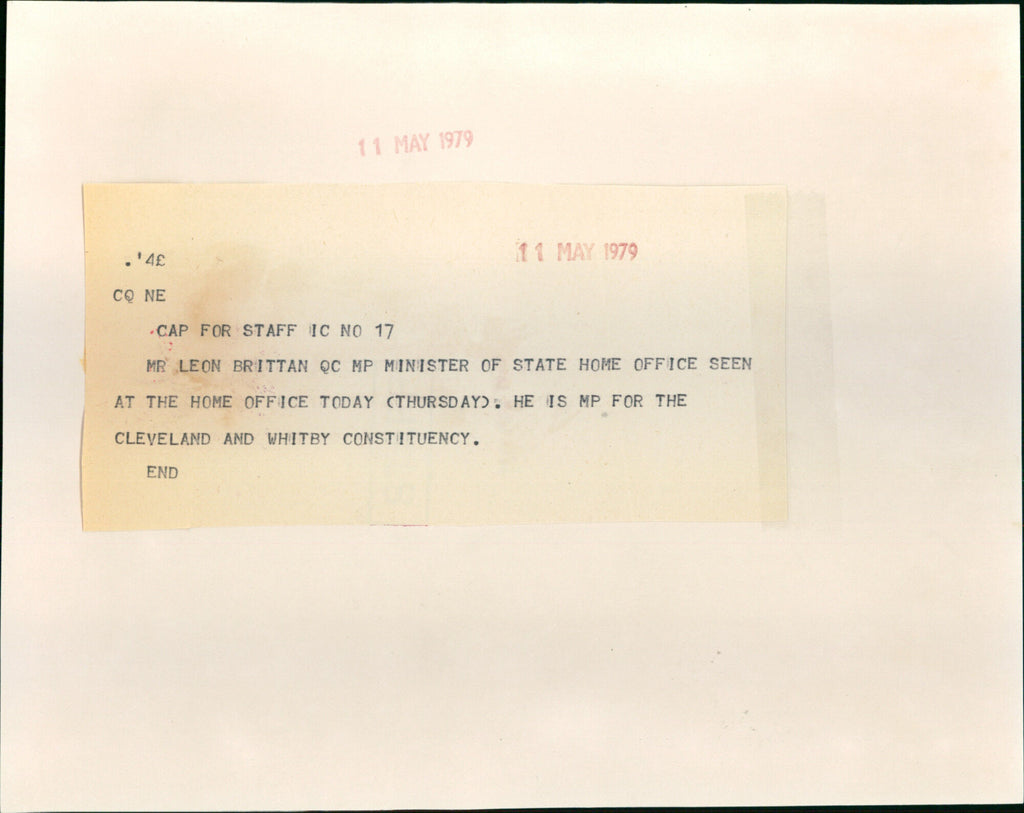 Sir Leon Brittain the prime minister of state home office at his home office. He is the Mp for Cleveland and Whitby constituency Sir Leon Brittain the prime minister of state home office at his home office. He is the Mp for Cleveland and Whitby constituency