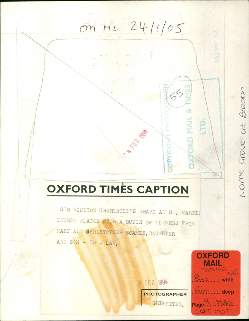 Sir Winston Churchill's grave at St. Martin Church with a bunch of flowers from Mary and Christopher Soames, daughter and son-in-law. Sir Winston Churchill's grave at St. Martin Church with a bunch of flowers from Mary and Christopher Soames, daughter and son-in-law.