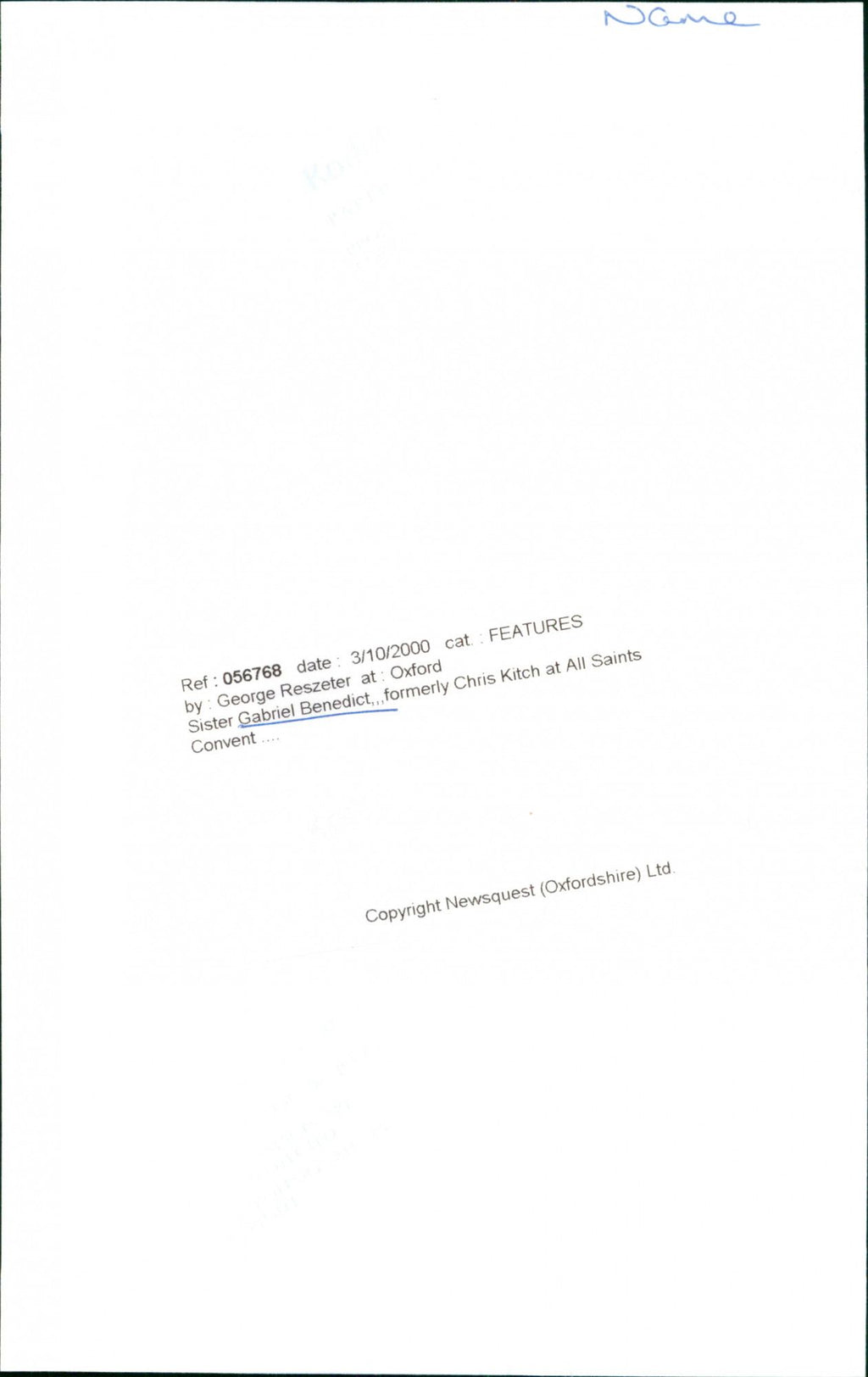 Sister Gabriel Benedict formerly Chris Kitch at All Saints Convent. Sister Gabriel Benedict formerly Chris Kitch at All Saints Convent.