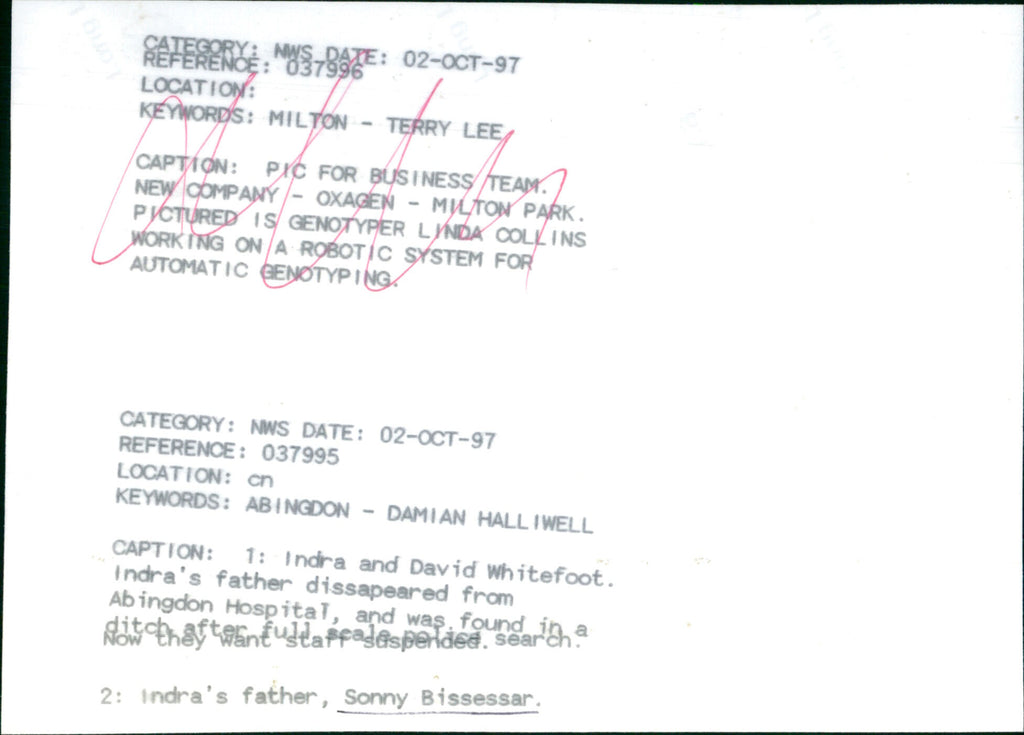 Indra's father, Sonny Bissessar, disappeared from Abingdon Hospital. Indra's father, Sonny Bissessar, disappeared from Abingdon Hospital.