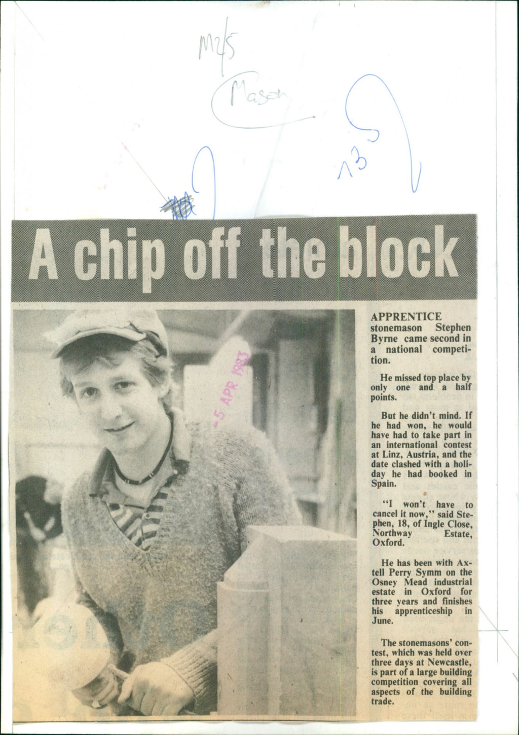 Apprentice stonemason Stephen Byrne came 2nd in a national competition. Apprentice stonemason Stephen Byrne came 2nd in a national competition.