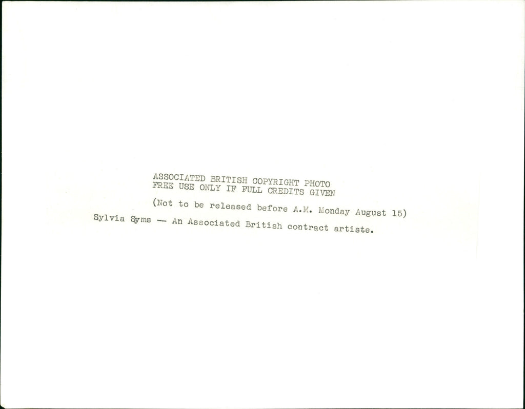 Sylvia Syms, an Associated British contract artiste. Sylvia Syms, an Associated British contract artiste.