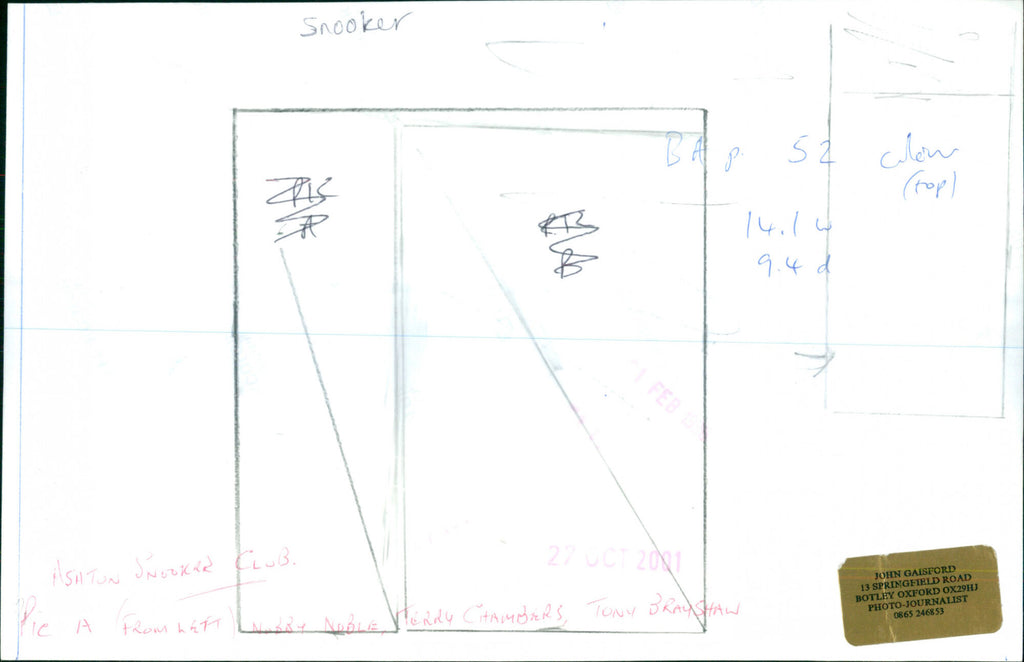 Terry Chambers, Nobby Nobble, and Tony Brayshaw at Aston Snooker Club Terry Chambers, Nobby Nobble, and Tony Brayshaw at Aston Snooker Club